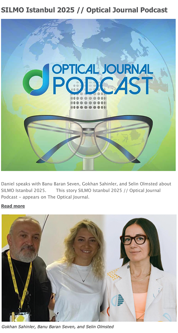 Daniel, the executive editor of the Optical Journal and Optical Business News, speaks with Banu Baran Seven, Gokhan Sahinler, and Selin Olmsted about SILMO Istanbul 2025.